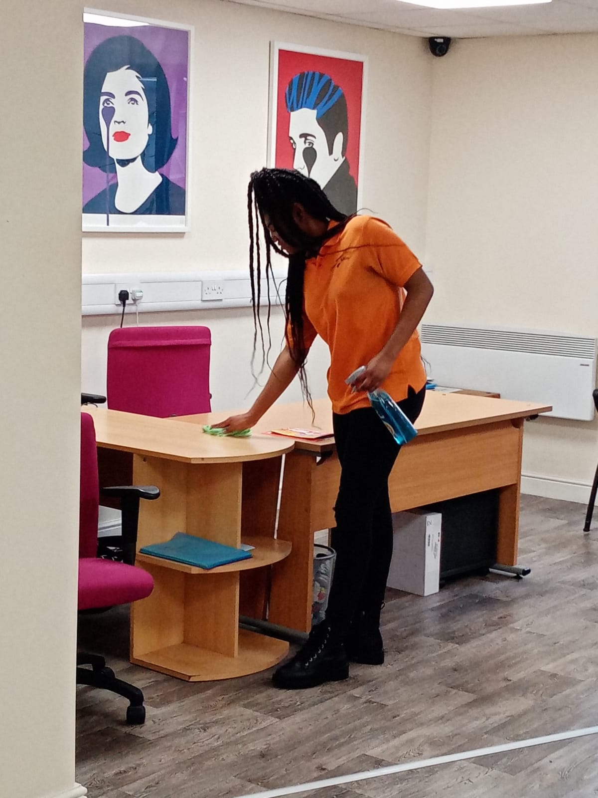 - Sanitising public spaces such as bathrooms, kitchen and reception areas